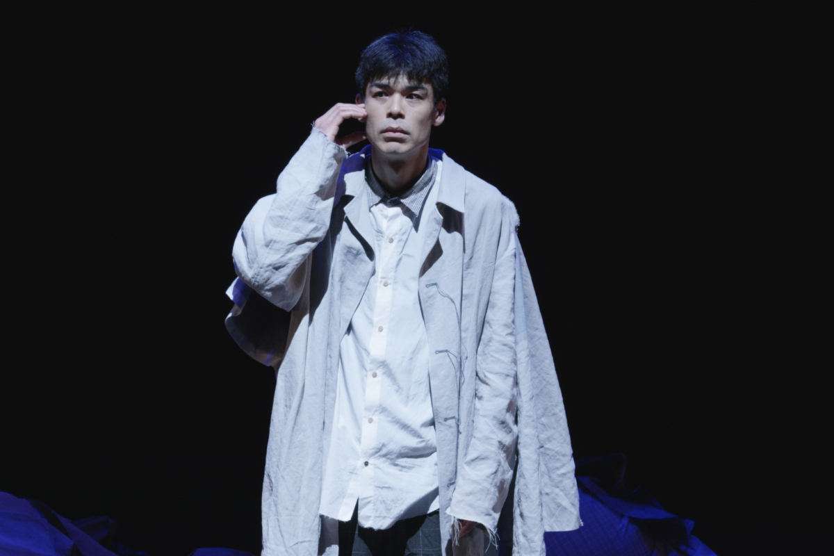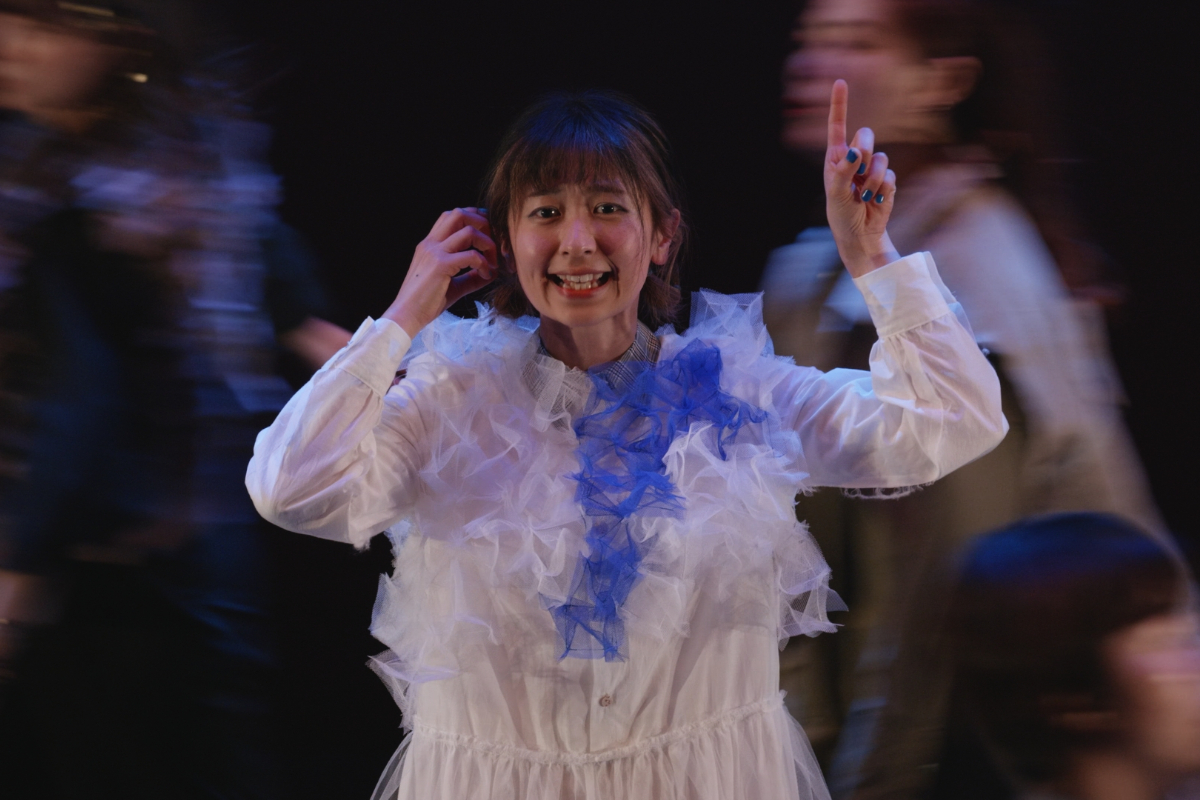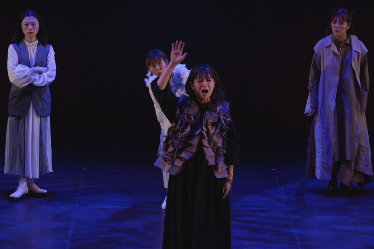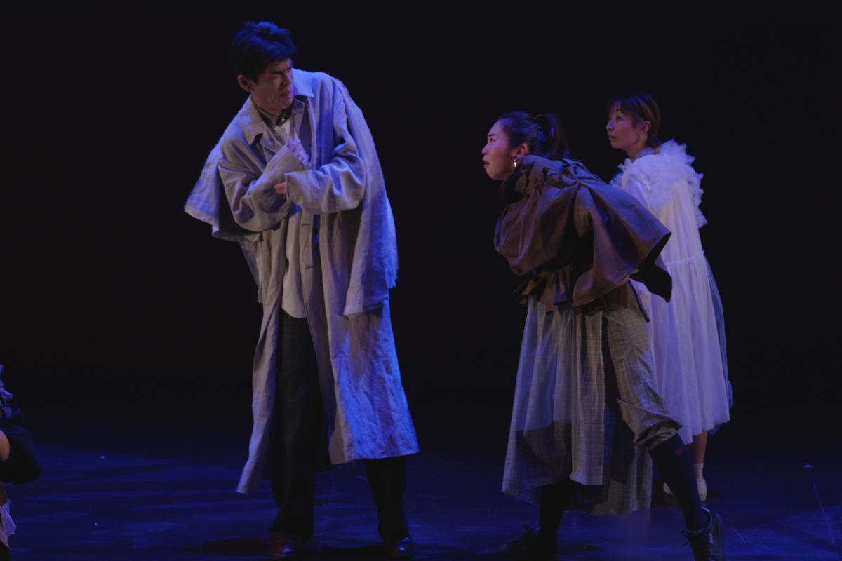 その瞬間、突風。顔を臥せる人々の影が蜃気楼のように舞台に現れる。風が収まると中心にギザがいる。