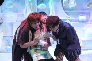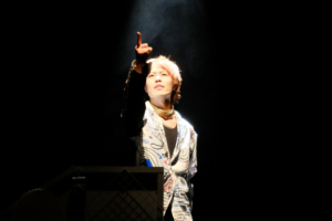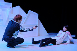 2人、崩れ落ちる。瞬間、暗転。暗闇にサラ・ベルナールの嗚咽の声。