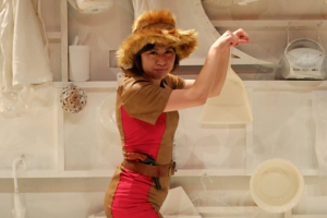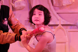 レポーターの伊武 ならば七つのドレスを脱ぎ捨てる、ストリップの儀式が必修科目でしてよ、お姫サマ。