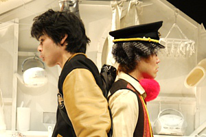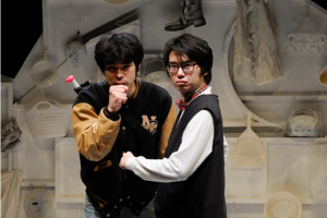 と、背後から、西部劇の登場人物の様な扮装のヤング・レオ登場。