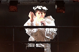 パエトーン、裸足でそっと、地面を踏みしめるその足下に業火が広がり、大地はたちまち焦土と化す。羊は消え、アポロン登場。