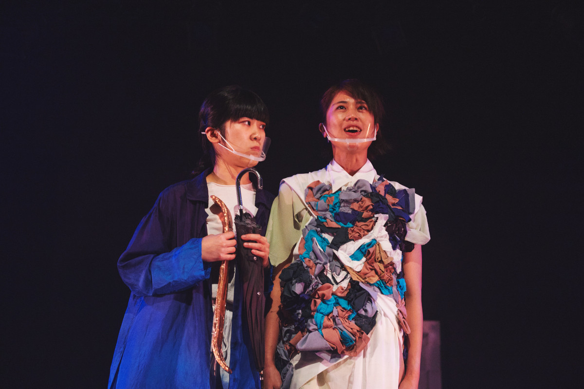 その瞬間、弾丸のような雨粒の音!女たち、傘の中に姿を隠した。