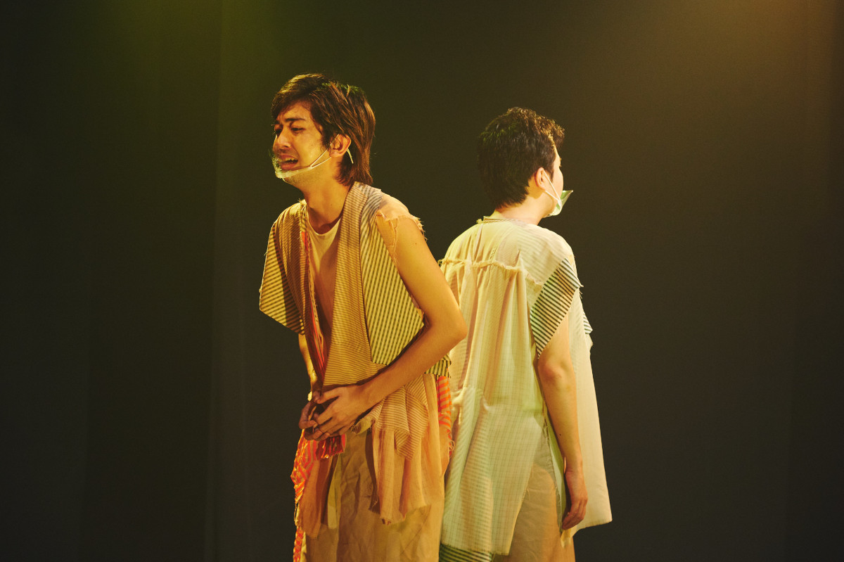 シジフォス …アキレス!なんて姿に!(アキレスの顔に触れる)。…ヒンヤリ。冷たい。冷たすぎる!これは…この顔は…金属?…いや、そうじゃない。血が通ってないんだ。そんじゃあ、水に沈んだ泥土でこの手を握った、十人並みのあのヒトの、あの手も…?
