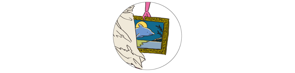 ラッセン、手に持った絵画を広げる。イルカの描かれた、いわゆるあの、ラッセンの絵画。