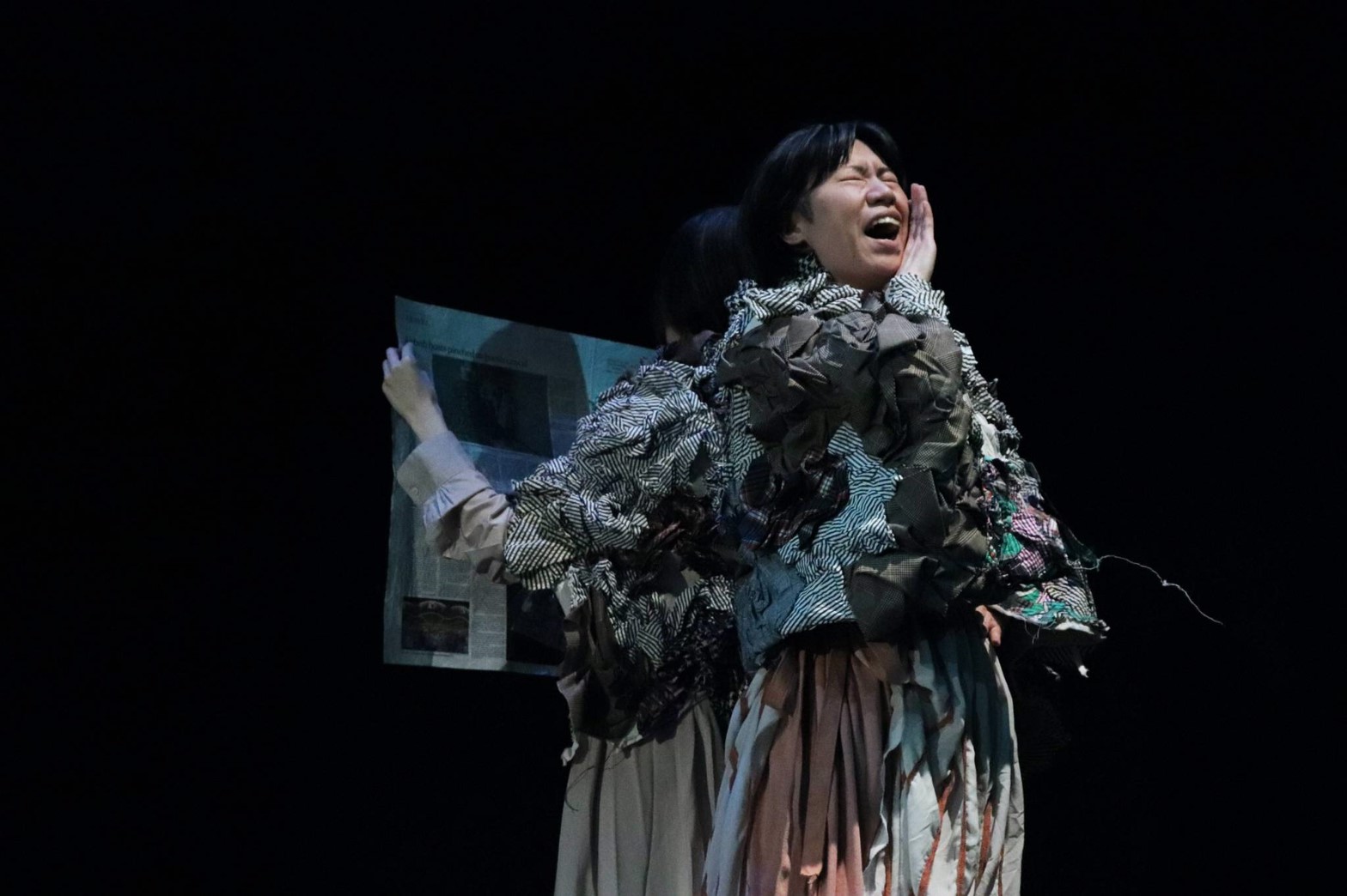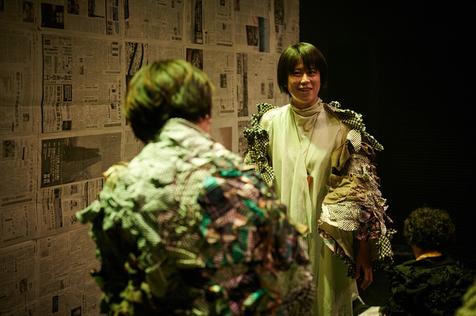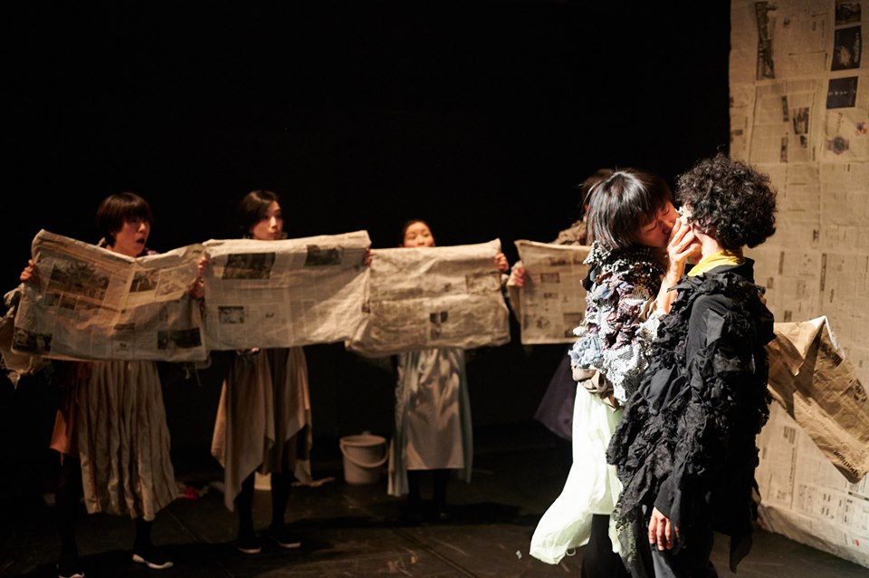 その瞬間、ゴボゴボと水底に沈む音!沈むホゾ宮。その周囲に老婆たち、集まってきて、新聞紙をかける。澄香=老婆4、