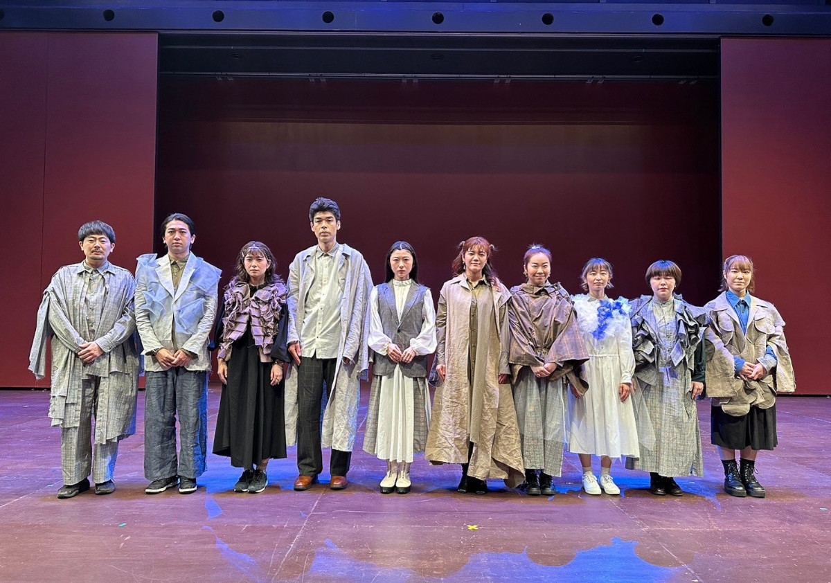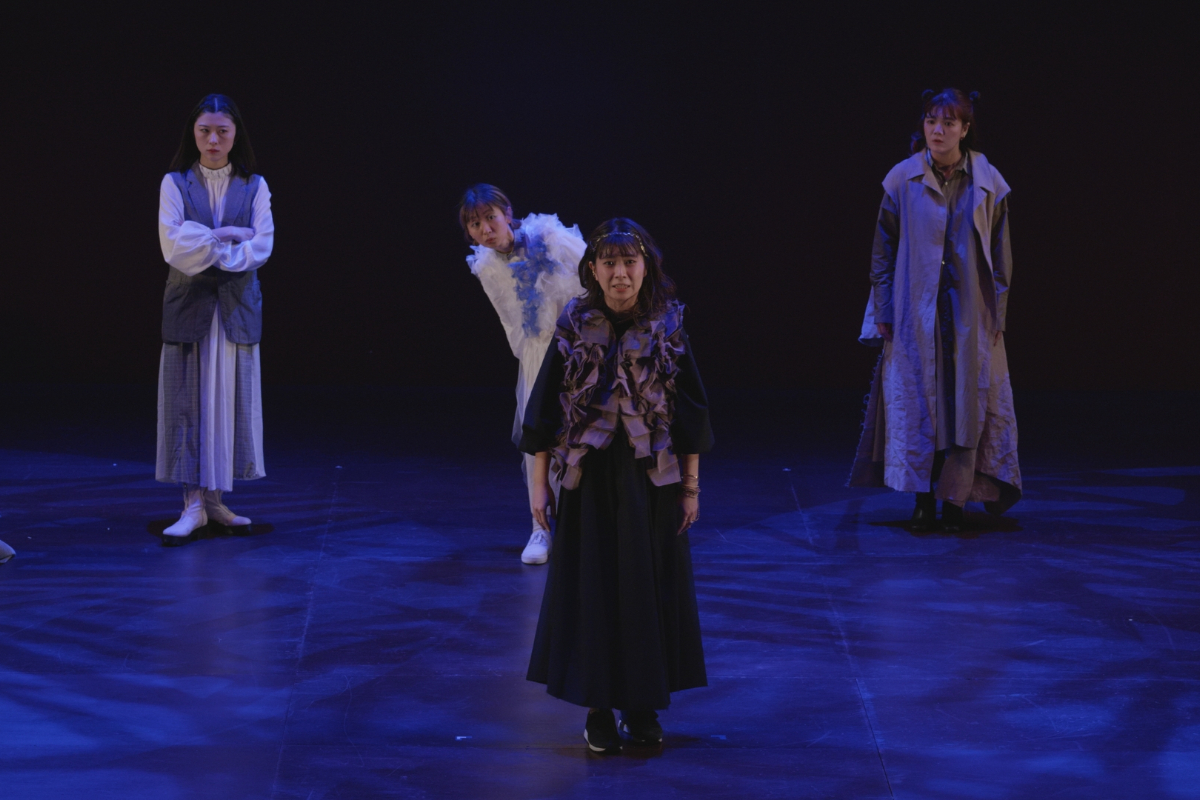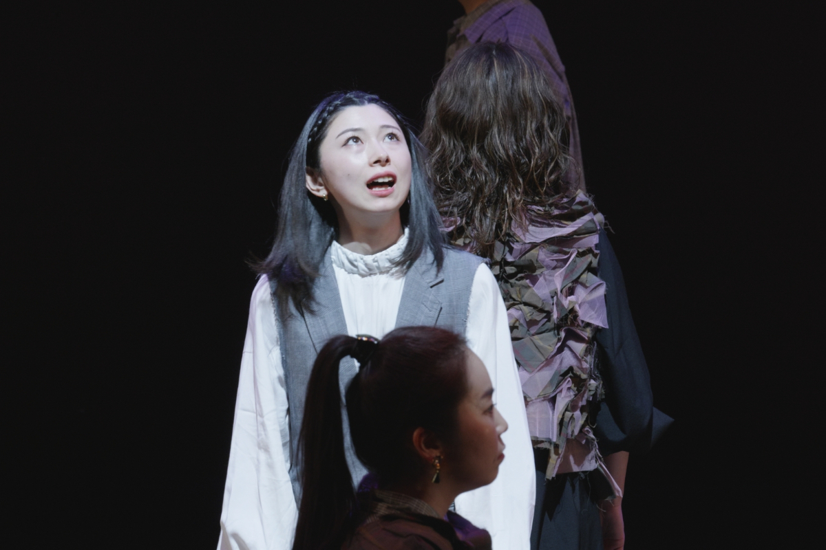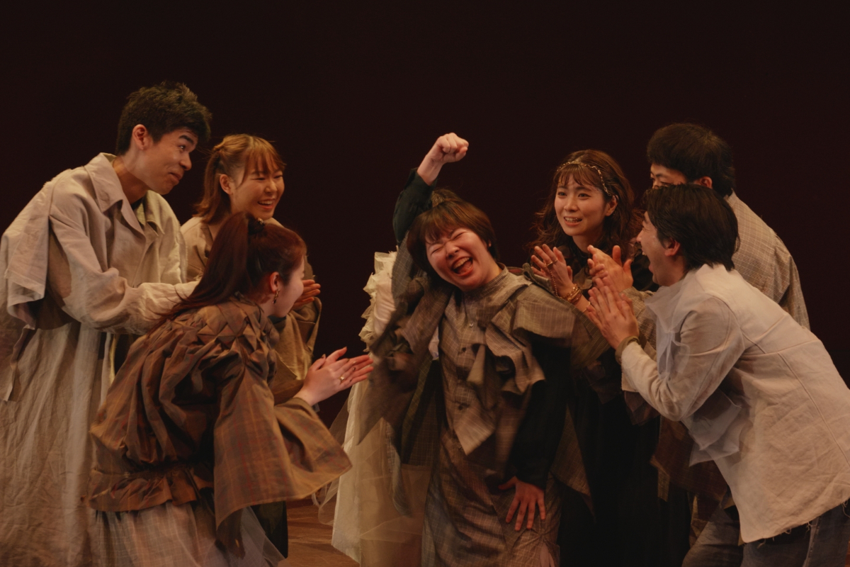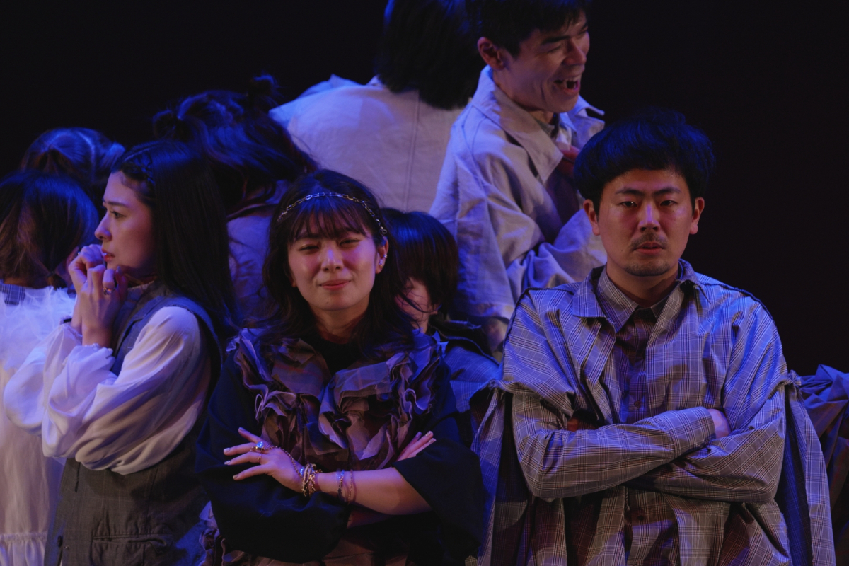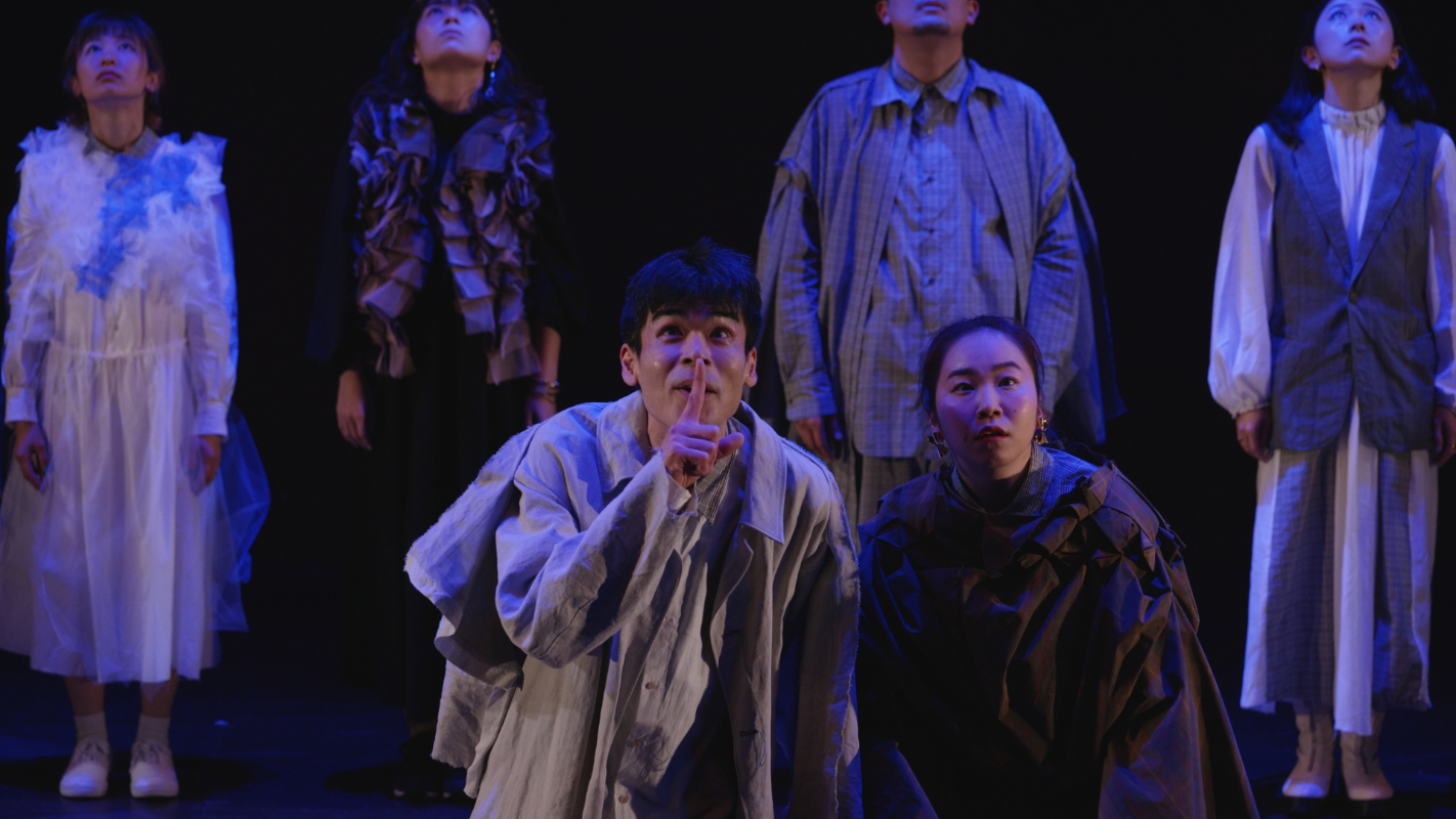 その瞬間、突風。顔を臥せる人々の影が蜃気楼のように舞台に現れる。風が収まると中心にギザがいる。