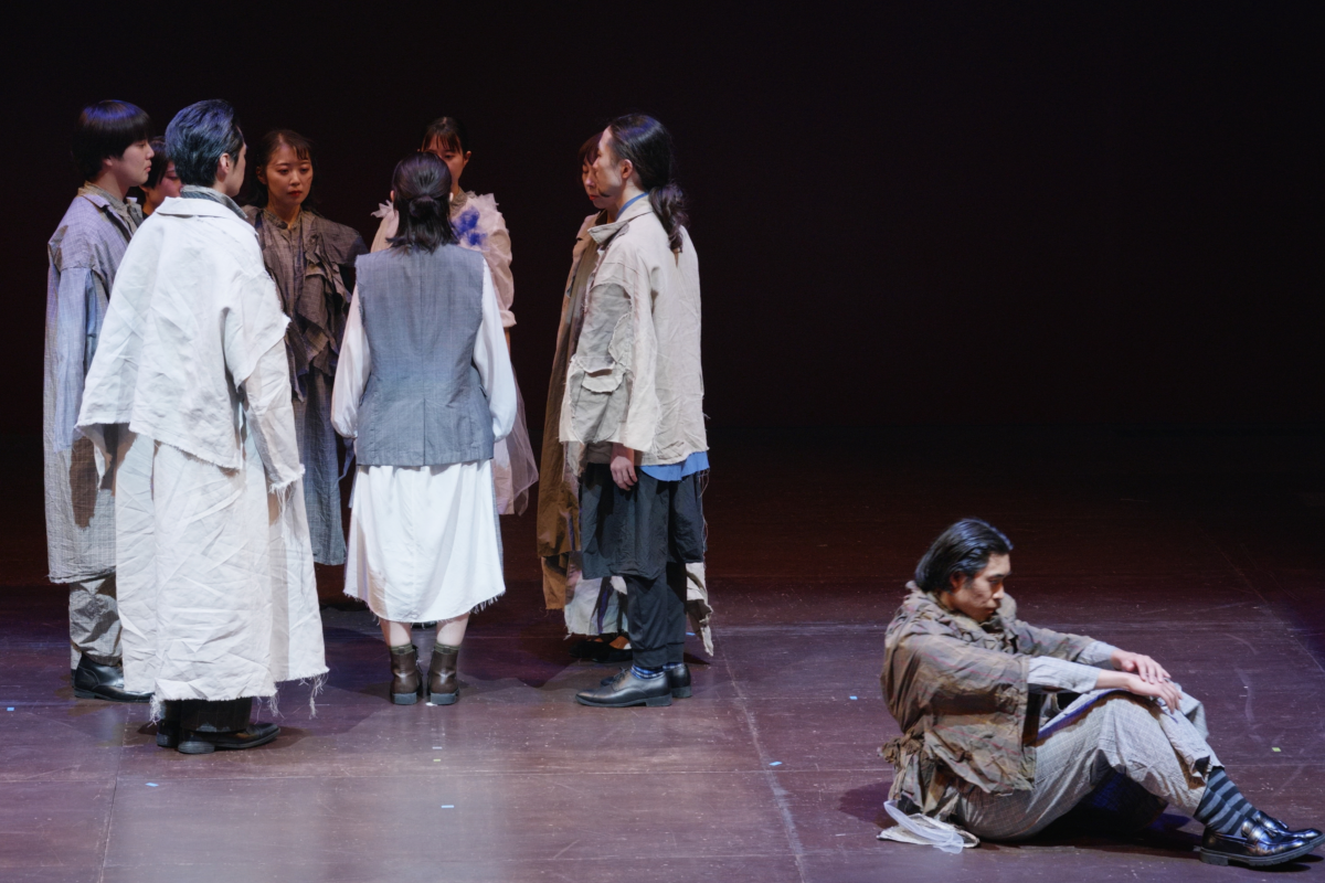 ユーリ、周囲に浮かぶ人々に飲み込まれる。ユーリの言葉を人々が、代わる代わる喋ってゆく。
